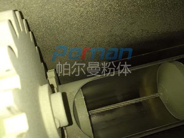 帕爾曼粉體設備設計生產的這種鋼絲繩管鏈輸送機包括自動箱(從動箱)、8齒鏈輪、電機減速機、帶盤片的運送鏈條,輸料管道。所述自動箱(從動箱)兩邊均設置有支管,支管與自動箱(從動箱)均相連通,8齒鏈輪裝置于自動箱(從動箱)內,所述輸料管形狀為曲折形,經過法蘭銜接。輸料管兩端與自動箱(從動箱)兩邊設置的支管別離相連通地對應銜接,運送鏈穿過輸料管和支管內孔與自動鏈輪相傳動銜接。