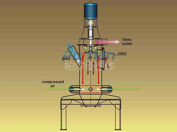 MQL流化床氣流粉碎機(jī)設(shè)備是一種經(jīng)壓縮空氣進(jìn)行冷凍、過濾在干燥之后利用噴嘴的作用形成的超音速氣流準(zhǔn)確的射入到粉碎室內(nèi),在氣流的作用下就能夠使物料呈現(xiàn)出流態(tài)化狀態(tài),并且被進(jìn)行加速運(yùn)動(dòng)處理加速后的物料會(huì)在多個(gè)噴嘴的噴射氣流的交匯點(diǎn)處進(jìn)行匯合。物料匯合后就會(huì)因?yàn)楦咚贇饬鞯淖饔枚嗷ヅ鲎踩缓竽Σ敛粩嗟倪M(jìn)行粉碎作用,循環(huán)處理之后就會(huì)達(dá)到超微超細(xì)粉碎的作用。